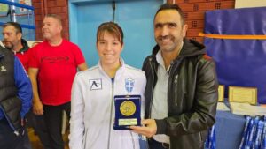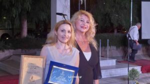 Μια χρυσή μπαλαρίνα, να προσπαθεί να ισορροπήσει συγκεντρωμένη κρατώντας την χρυσή ομπρέλα της, αποφεύγοντας τα λασπόνερα. ‘’Τι θέλει να μας πει η ζωγράφος’’, αναρωτήθηκα και την ρώτησα.’’ Έτσι σε βλέπω μαμά, έτσι σε ξέρω και σε αγαπάω με τους ελιγμούς σου στα δύσκολα για να ισορροπείς, ακόμα και αν φοβάσαι. Να με προστατεύεις και να ελίσσεσαι, να μην εγκαταλείπεις και να εξελίσσεσαι…..από την αρχή ξανά.’’