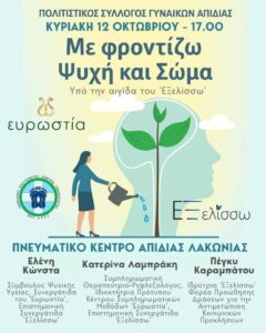 Με αφορμή την Παγκόσμια Ημέρα Ψυχικής Υγείας, ο Πολιτιστικός Σύλλογος Γυναικών Απιδιάς διοργανώνει μια εκδήλωση αφιερωμένη