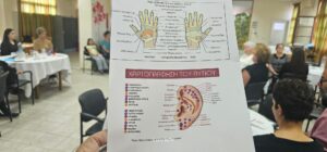Οι εισηγήτριες ενημέρωσαν το κοινό για τα ψυχοσωματικά συμπτώματα, τη σημασία της ενότητας σώματος και ψυχής για την υγεία, καθώς και για το τι είναι η συμπληρωματική θεραπεία και η ρεφλεξολογία. Στο πλαίσιο της ημερίδας πραγματοποιήθηκαν ασκήσεις επίγνωσης και πρακτικές ρεφλεξολογίας, όπως το τρίψιμο της παλάμης που συνδέεται με τη λειτουργία του εγκεφάλου.